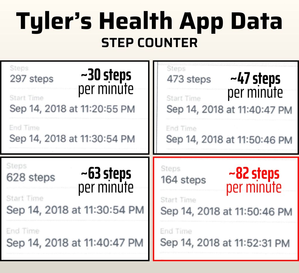 Also, the health app on Tyler’s phone recorded a sudden increase in the pace of his steps before abruptly ending at 11:52.
