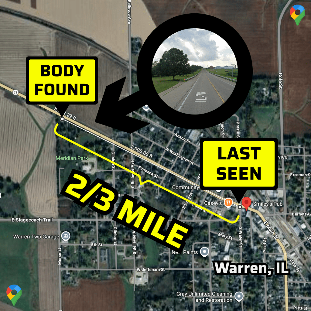 Using the Life360 data, investigators found Burke had left the area of the Main and Water Street intersection around 8:38 p.m. eventually ending up in the location where the alleged incident took place on Route 78, just outside of Warren city limits, and remained there until she was found.