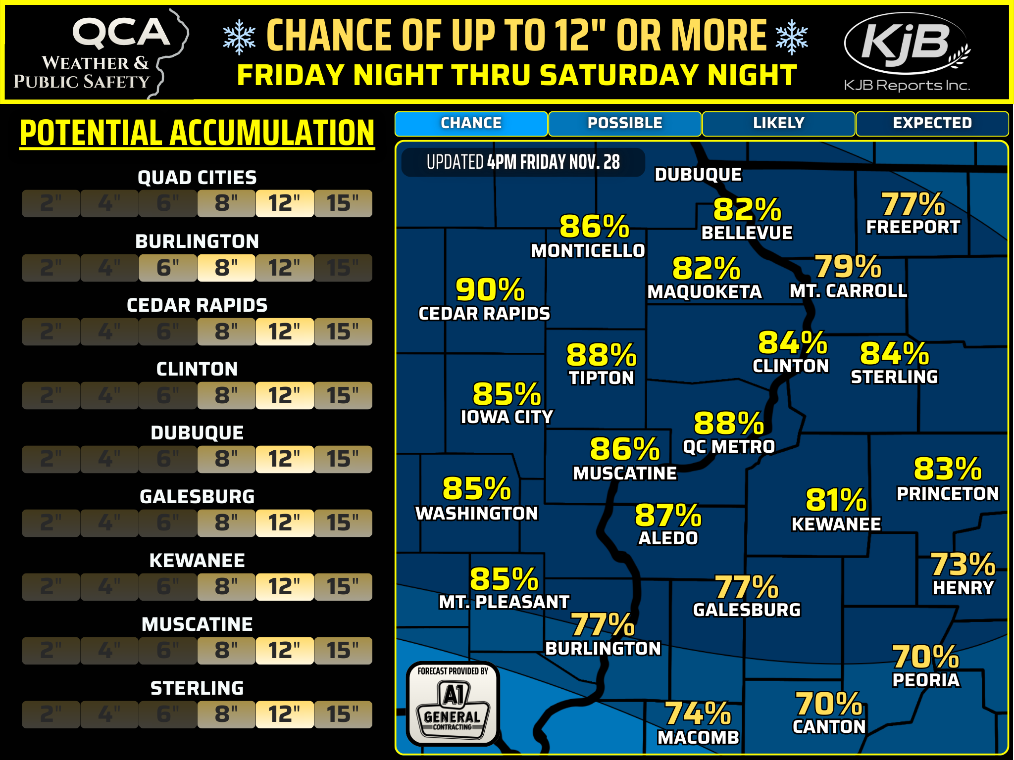 The forecast remains on track for widespread heavy snowfall across all of eastern Iowa and northern Illinois Friday night into Saturday and Saturday night.