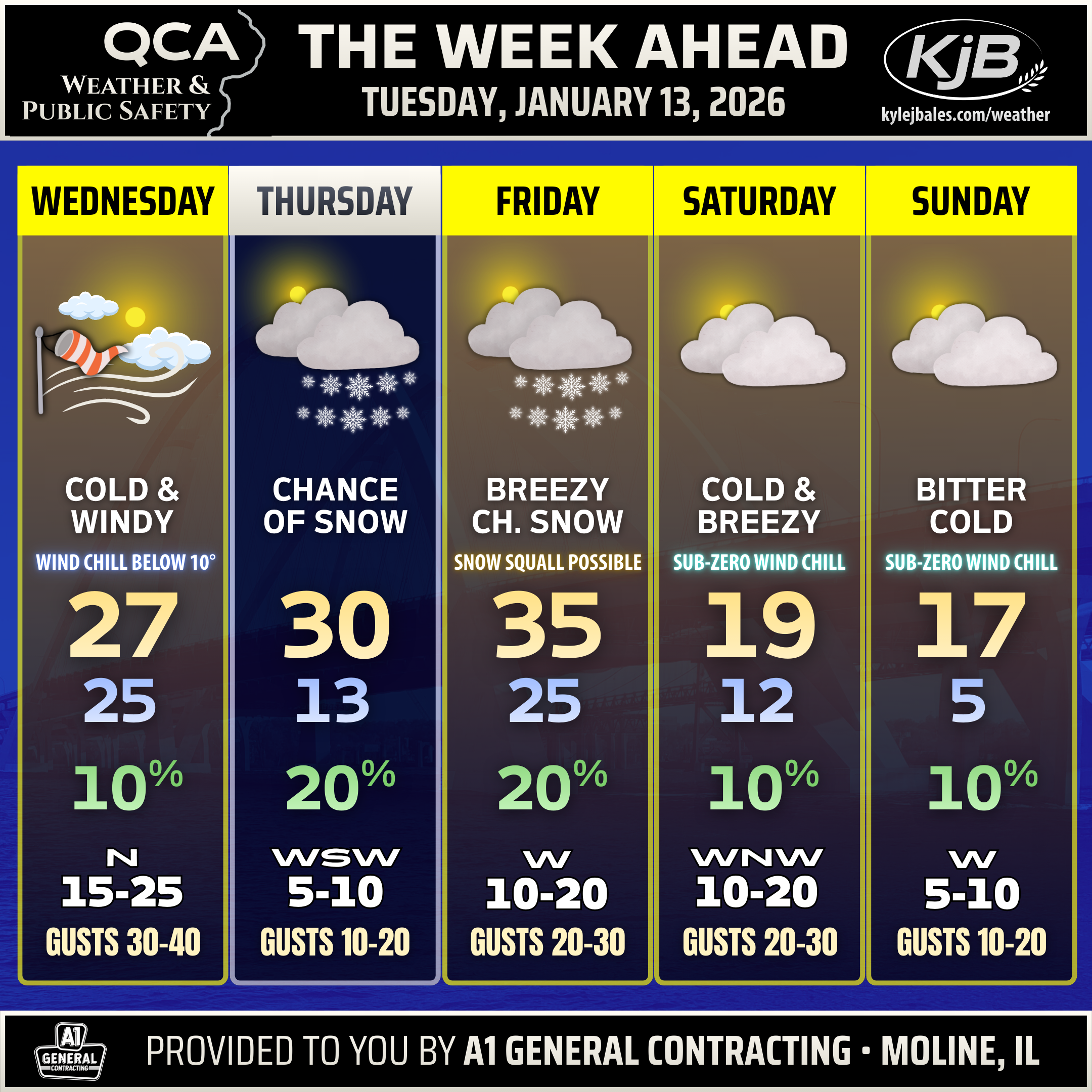 Cold and windy Wednesday with gusts up to 40 mph and wind chill ranging from the 0s to 20s