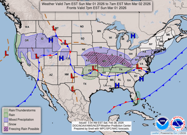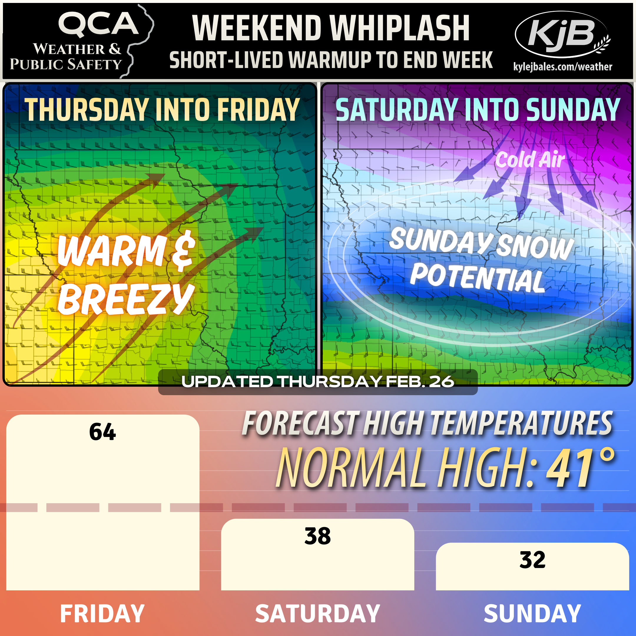 👉 Light snowfall is possible Saturday along and north of Highway 30 before snow chances increase Sunday further south.