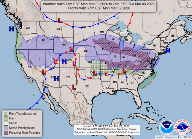 Flurries, light snow or freezing drizzle is possible Sunday night into Monday morning, mainly south of Interstate-80.