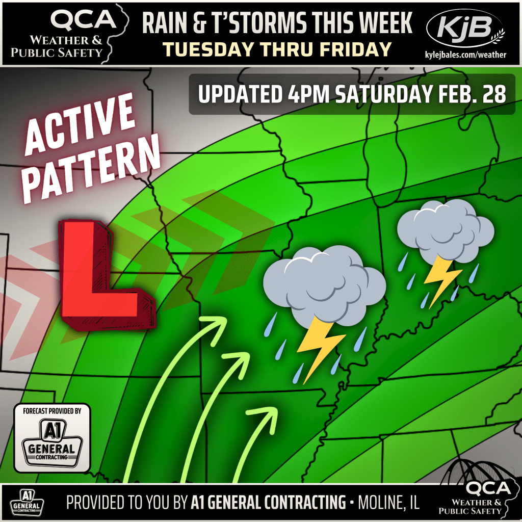 👉 Total rainfall up to 1 to 3 inches is possible across parts of the QCA region through the end of the week as multiple systems traverse the Midwest.